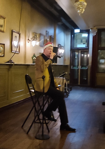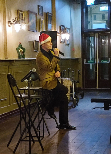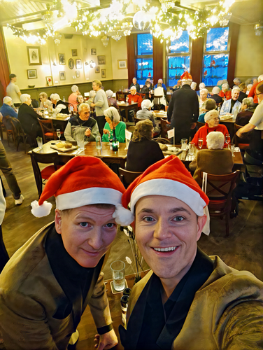 Mark en Ramon Riemer-Menger brengen tijdens het driegangendiner van Stichting Eet Met Je Hart kerstliederen en sfeer tussen de gangen door.